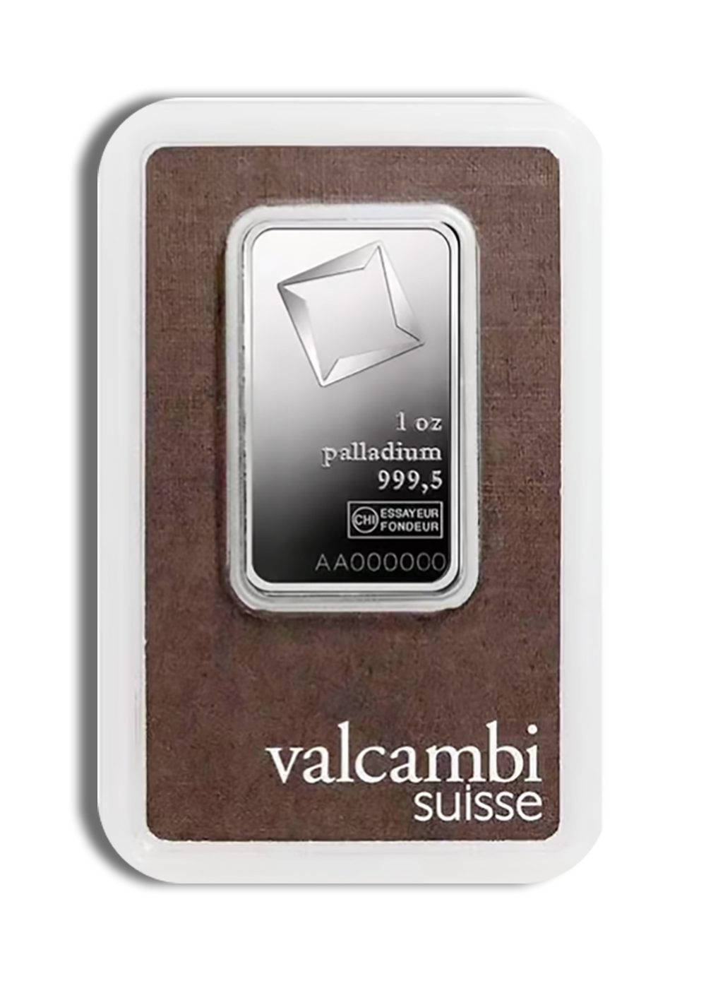 Specifications: Metal – Palladium; Weight – 1 oz; Purity – .9995; Brand – Valcambi; Type – Bar. Buy the Valcambi 1 oz palladium bar carded at Agate Metals and invest confidently in palladium bullion.