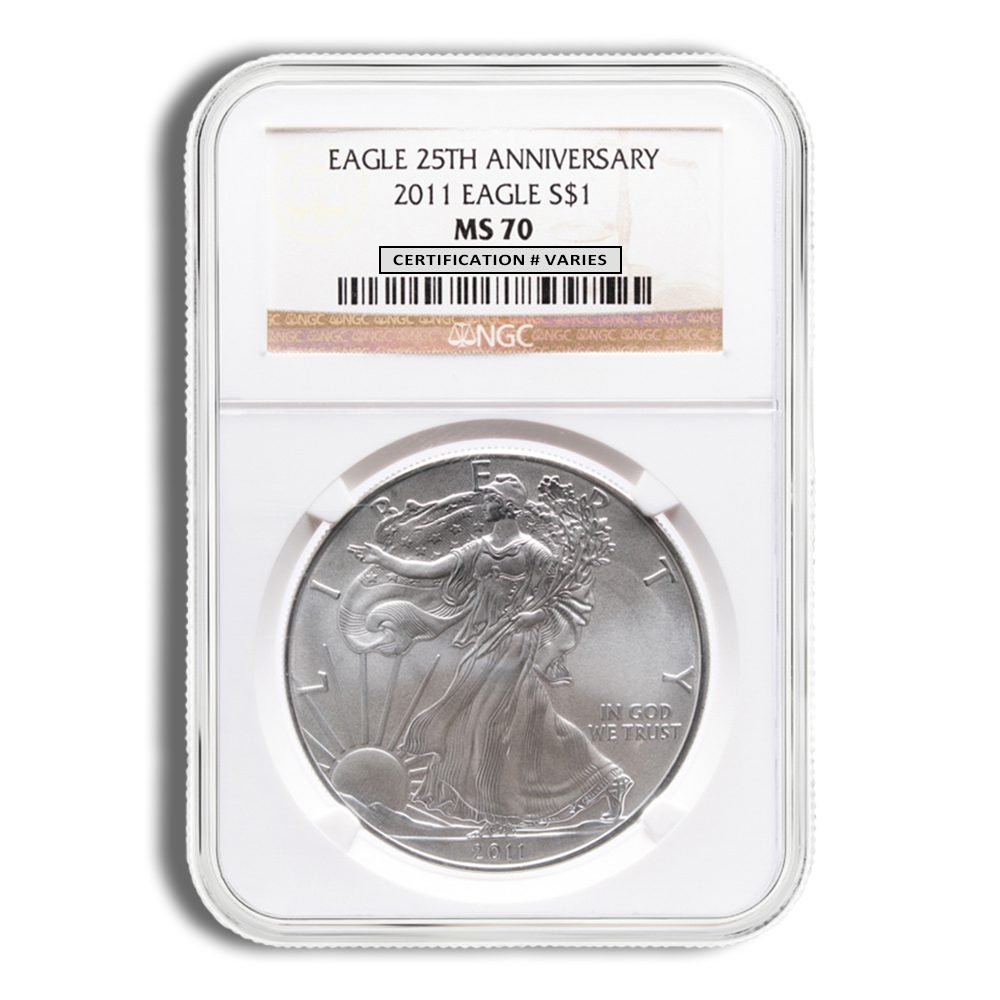 The 2011 Silver Eagle NGC MS70 is a 1 oz .999 fine silver bullion coin graded MS70 by NGC, representing the highest quality available. Minted by the United States Mint, this coin is a top pick for both collectors and investors.
