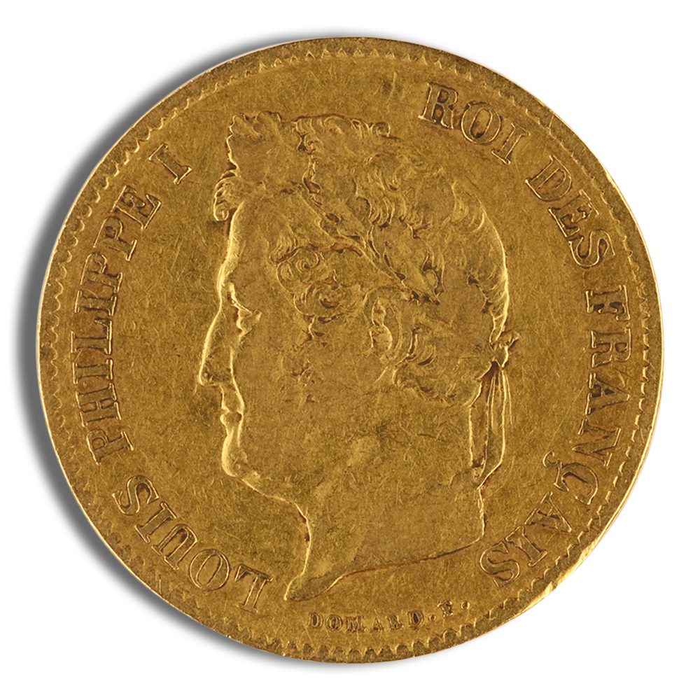 The France Gold 40 Francs Louis Philippe I coin, minted from 1831 to 1838, contains 12.90 grams of .900 fine gold. This historic French bullion coin features the portrait of King Louis Philippe I and is prized by both collectors and investors.